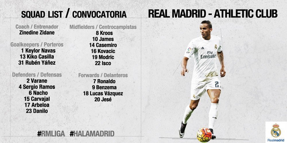 Tõenäoliselt täidab Marcelo koha Nacho. Kuigi ka Danilo pole ilmselt võimatu valik. Kuna Zidane rääkis rotatsioonist, siis ilmselt on oodata rohkem muutusi kui Kovacic - Isco. Võimalikud puhkajad oleksid ilmselt Modric, Kroos või James, viimane vist isegi kõige tõenäolisem. Loodetavasti ei kannata kvaliteet väljakul liiga palju, sõltumata sellest, kui paljudel meestel puhata lastakse.